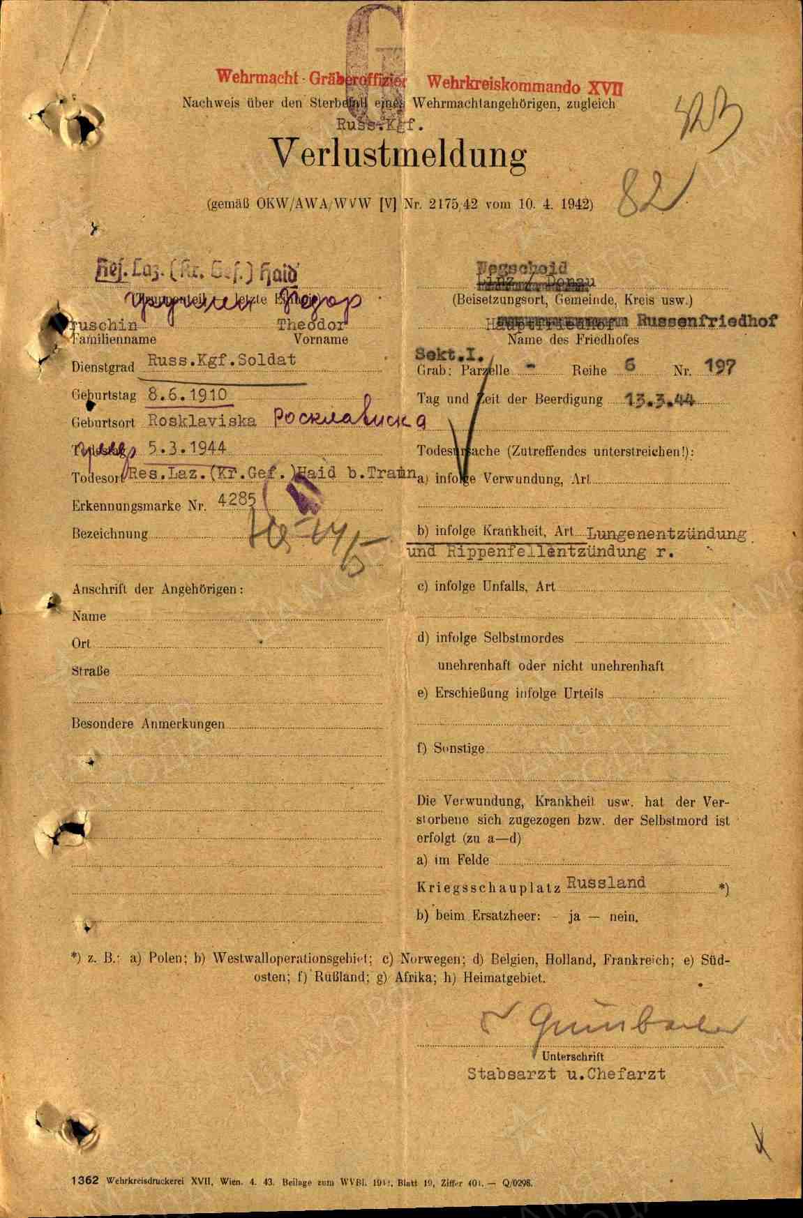 | Авиации СГВ ВОЕННОПЛЕННЫЕ - ШТАЛАГИ, ОФЛАГИ, КОНЦЛАГЕРЯ Лагеря XVII военного округа Германии ( Wien ) Stalag XVII B Gneixendorf (Krems) Res. Lazarett Haid/Ansfelden (Oberösterreich, Bezirk Linz-Land) |