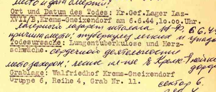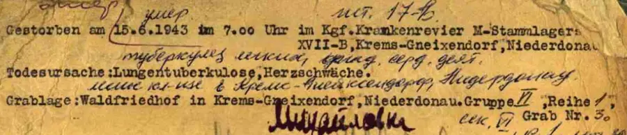 Вот записи о смерти от туберкулеза в Ламсдорфе и захоронении