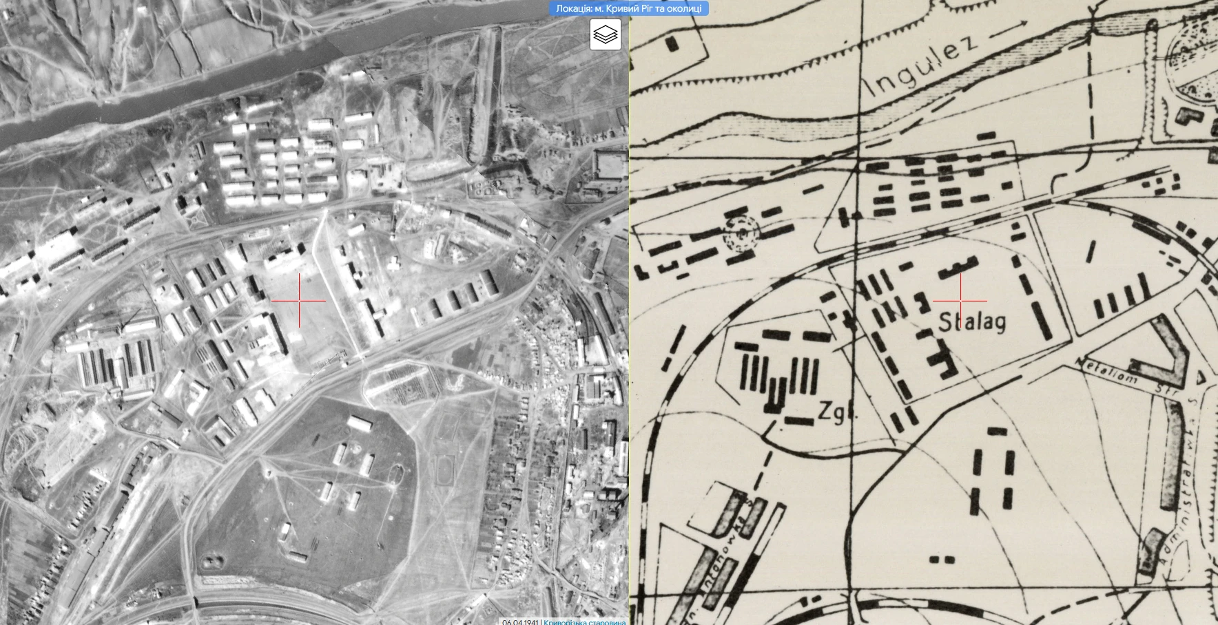 для определения месторасположения лагеря - немецкая карта с указанием Шталага 338, аэрофотосъемка и нынешний гугл спутник.