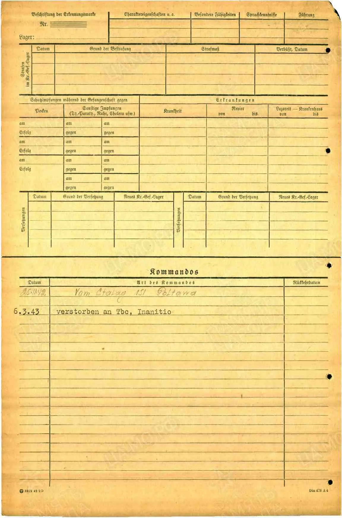 | Переведен из Полтавского лагеря 151 ,умер в лагере 365