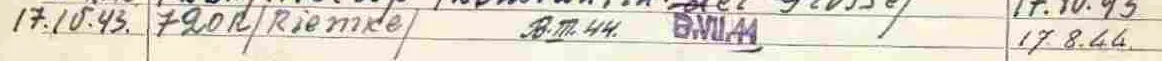 doc_by, Это карта перемещаемых пленных конца 44 года, на лицевой таких карт особая диагональная черта с датой смерти. Так называемые марши смерти. Перемещен в лагерь Витмаршен, где и умер 9.01.45 года. Пленный находился в рабочей команде 720 до 17.08.44 года