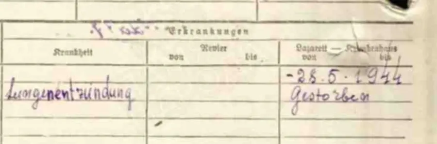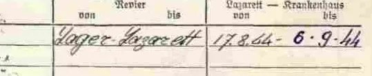 Далее отправлен в лагерь-лазарет VI-A, в котором скорее всего получил диагнох туберкулез.