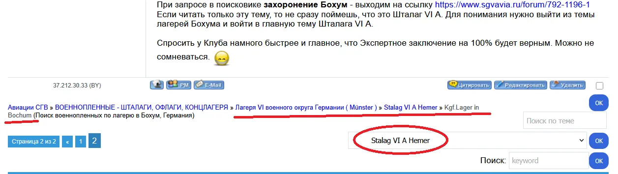 Рабочие команды в Бохуме были от хемерского шталага VI A, поэтому тема Бохума находится в разделе шталага VI A, что Вам и показал Саня. Это очевидно.
