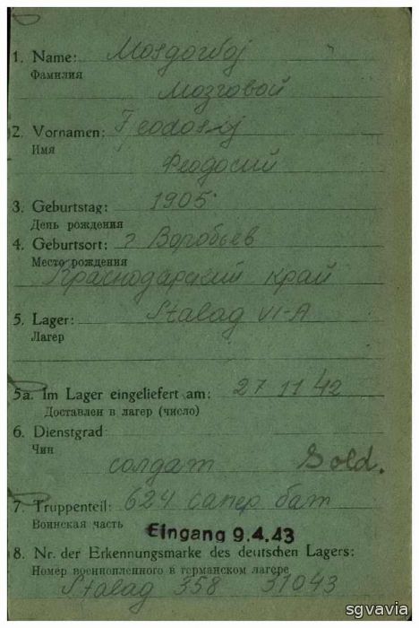 nikkodim, спасибо и Вам большое за ответ! Подходя ночами по бесконечным ссылкам сама пропустила карточку ((это очень волнительно и тяжело.. Я даже представить не могу какого все это было.. Спасибо Вам за уточнение по имеющейся информации. А на карточке можно понять даты пленения?