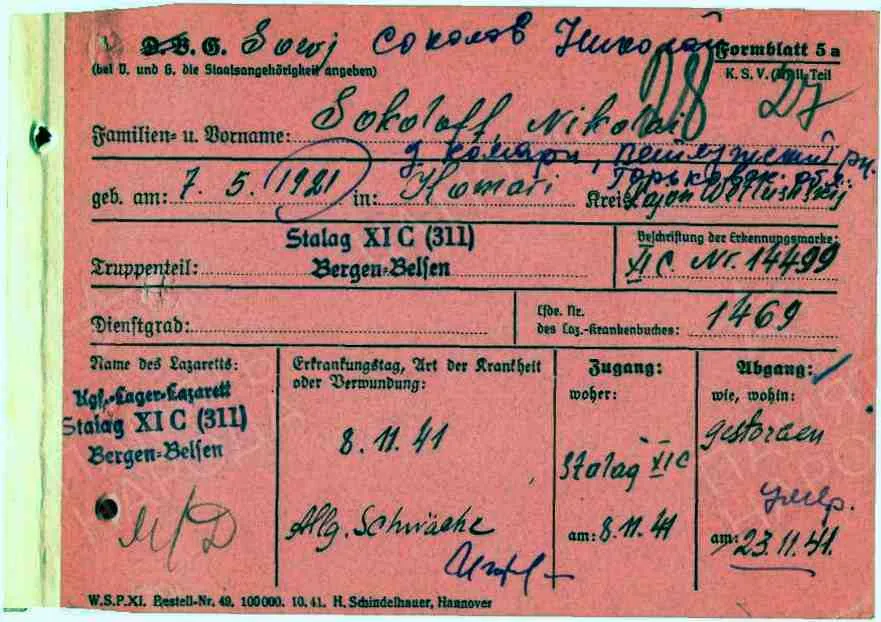 А чем Вам не нравится лазаретная карта шталага 311 за 1941 год?