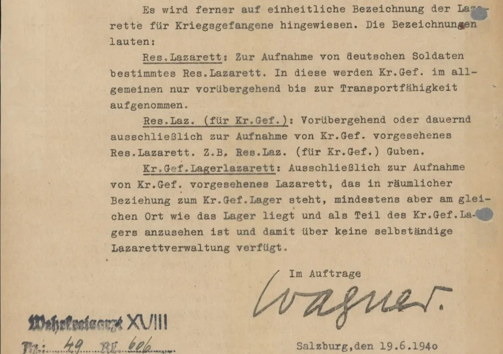 У него поди были замы по медицинскому обеспечению и по делам военнопленных. Вот из штаба командующего округом и спускались все директивы по лагерям военнопленных. А лазареты военнопленных неотьемлемая часть шталагов. Qui quaerit, reperit