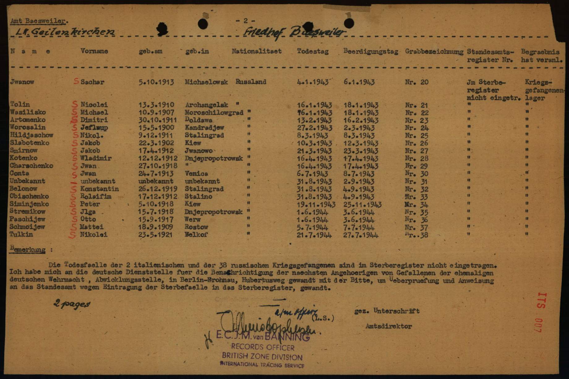 Вот список на советских военнопленных - 38 человек (из них один неизвестный) + в списке один русский ребëнок (первый в списке) :