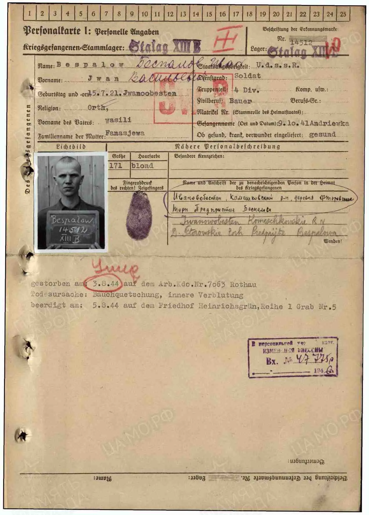 Судьба Погиб в плену