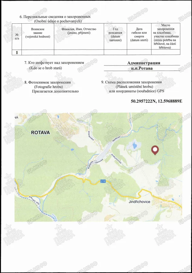 Место захоронения р-н Соколов, г. Ротава, лес