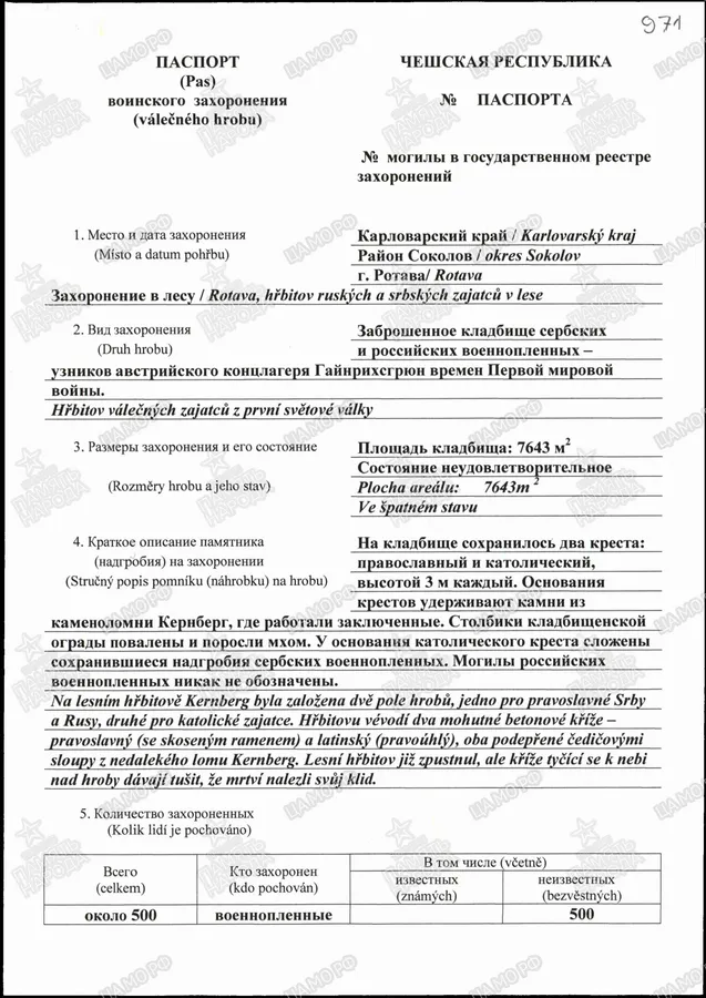 Страна захоронения Чехия