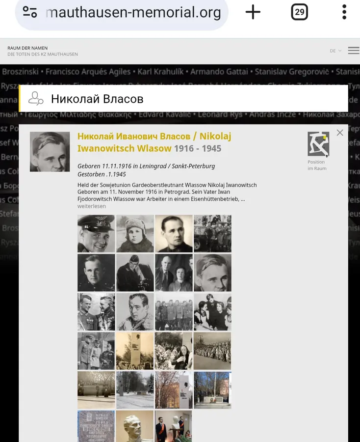 Похоже, что у Мемориала Маутхаузен нет на него никаких документов - ни карты узника, ни упоминаний в списках... Видимо, судьба реконструируется только на основе воспоминаний выживших узников.