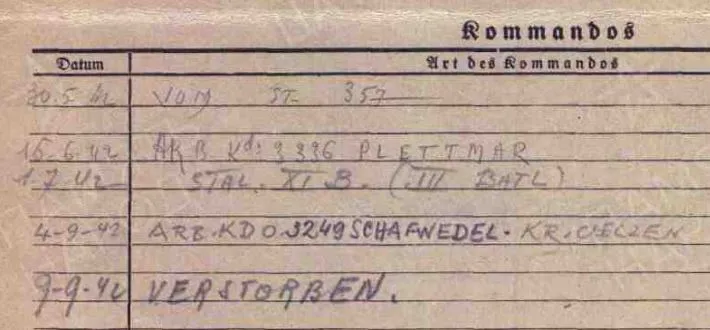 | Авиации СГВ ВОЕННОПЛЕННЫЕ - ШТАЛАГИ, ОФЛАГИ, КОНЦЛАГЕРЯ Лагеря XI военного округа Германии ( Hannover ) Stalag XI B Fallingbostel Arbeitskommando 3249 in Schafwedel (Landkreis Uelzen) |