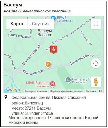 По информации Volksbund на еврейском кладбище Бассум покоятся 120 советских военнопленных в безымянных братских могилах. Всего надгробных камней для русских могил - 9. см. Фото Volker Fleig https://kriegsgraeberstaetten.volksbund.de/friedho....riedhof