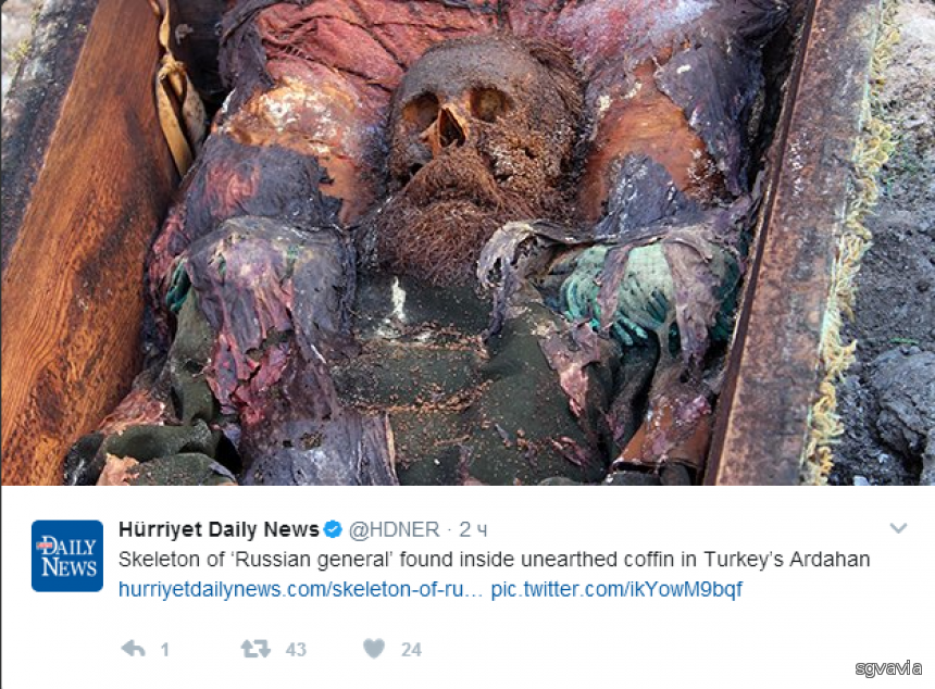 В конце апреля в Турции рабочие нашли гроб с останками русского генерала во время строительства фундамента здания в пригороде Ардагана.
