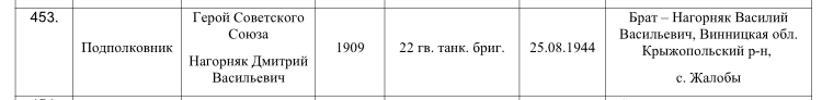 586 Фамилия Сандульский Имя Моисей Отчество Семенович Дата рождения/Возраст __.__.1908 Место рождения Украинская ССР, Винницкая обл., Ямпольский р-н, с. Подлесовка Дата и место призыва Ямпольский РВК, Украинская ССР, Винницкая обл., Ямпольский р-н Последнее место службы фэп 30 Воинское звание сержант Причина выбытия умер от ран Дата выбытия 03.07.1944 Название источника информации ЦАМО Номер фонда источника информации 58 Номер описи источника информации 18002 Номер дела источника информации 558 https://www.obd-memorial.ru/html/info.htm?id=6979533 Николай Викторович 14 ОА ПВО 1974-1976 У России только два союзника - это Армия и Флот