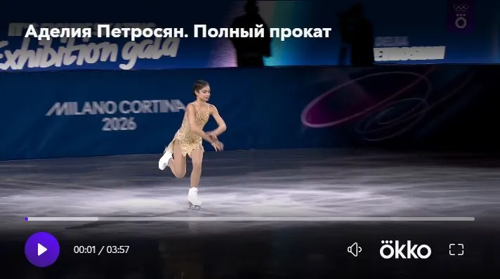 Российская фигуристка Аделия Петросян выступила с показательным номером на гала-вечере Олимпийских игр 2026 года в Милане. Фигуристка вышла на лёд в золотом платье и откатала программу под композиции Шакиры Waka Waka и Hips Don’t Lie. В рамках выступления Петросян выполнила два прыжковых элемента — тройной тулуп и двойной аксель.