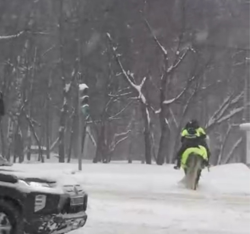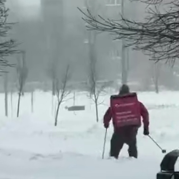 Пока обычный транспорт стоял, жители перешли на исторические и экстремальные виды перемещения. На дорогах заметили курьеров на лыжах и неутомимых велосипедистов, пробирающиеся через сугробы.