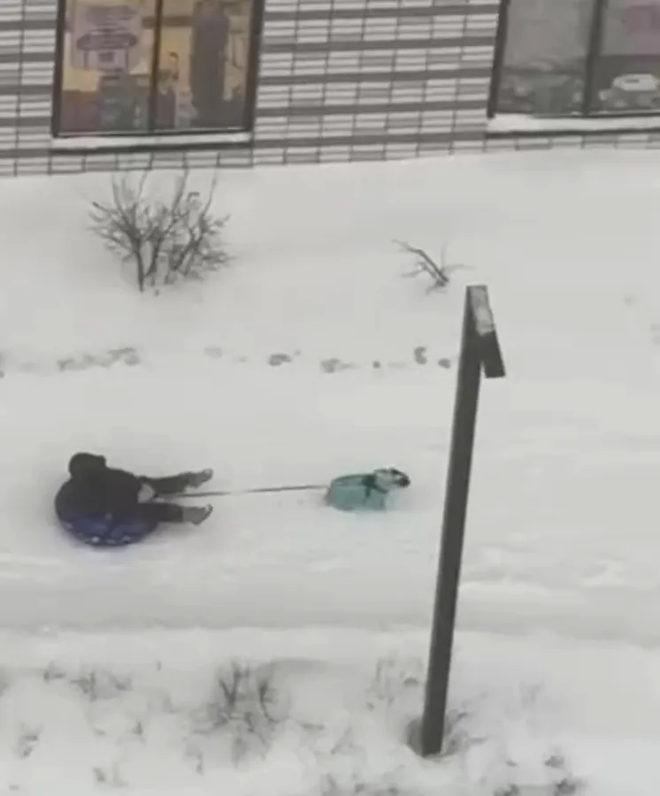 На патрулирование выехала конная полиция — идеальный транспорт в метель. А самые изобретательные — катаются на собачьих упряжках.