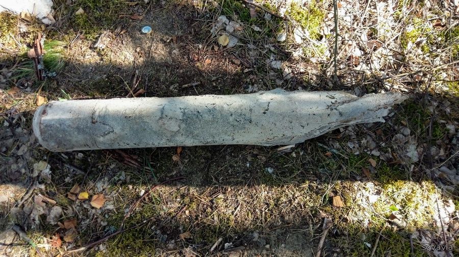 Из переписки в ОК: Образец снаряда меня крайне удивил. Непонятен масштаб, конечно, но! Первый взгляд однозначный - выстрел Града. Такой стабилизатор мог быть ещё у ПТУРСа, но на втором снимке явно длинное тело ракеты, то есть напрашивается Град. Однако при мне в окрестностях Борне Грады стрельбы не вели. Возможно, уничтожали боеприпасы взрывом или учебное пособие.