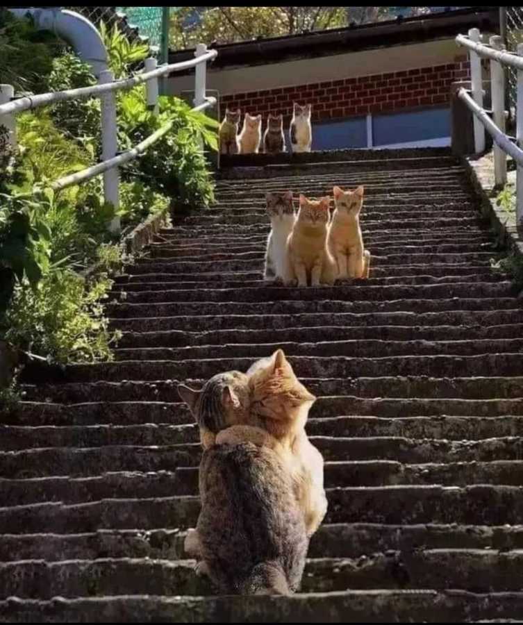 Мои кошечки и котики. Умилило сегодня, как Буся нежно обнимала Жульку, она старейшая у нас, и зачастую одна, и спит на нижней полочке "спального вагончика", сегодня я ее подняла на верх, а она такая боязливая, кроткая и ооочень воспитанная!