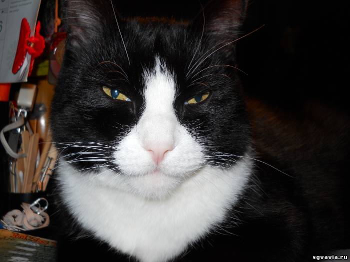Оружейник, Кот не на разведчика похож у Витька,а на гестаповца!С таким спать в одной комнате не дай бог,всю ночь трястись придется.как бы горло не перегрыз спящему! Ему еще каску нарядить и чистая копия штурмбанфюрера! Qui quaerit, reperit