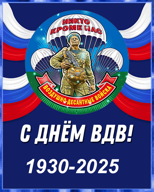 | Воздушно-десантные войска — «крылатая пехота», «голубые береты» — какими только эпитетами не награждали гвардейцев-десантников, но всегда, во все времена и при любых обстоятельствах неизменно оставались сила, мужество и надежность людей, живущих по принципу: «Никто, кроме нас!». И сегодня более миллиона россиян, носивших в свое время голубые береты, а также проходящих службу в Воздушно-десантных войсках в настоящее время, отметят свой праздник — День ВДВ.