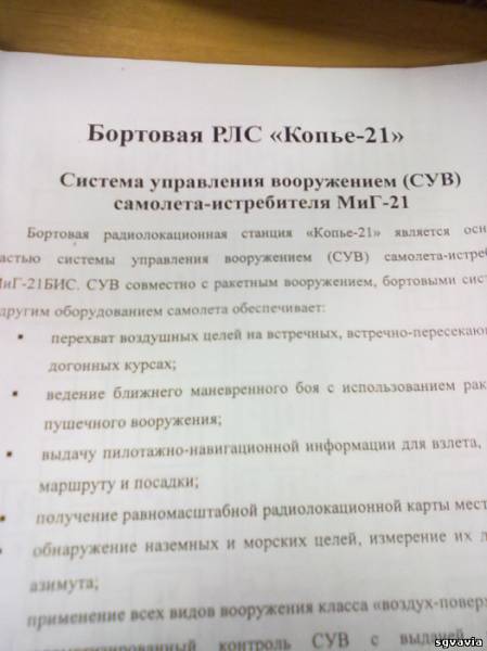 У нас сегодня лаба была по РЛС МиГ-21 - так интересно! нам её включали, шумела - ужас! я спросила, что так шумит - оказывается вентиляторы у неё. Даже видео сняла)