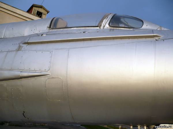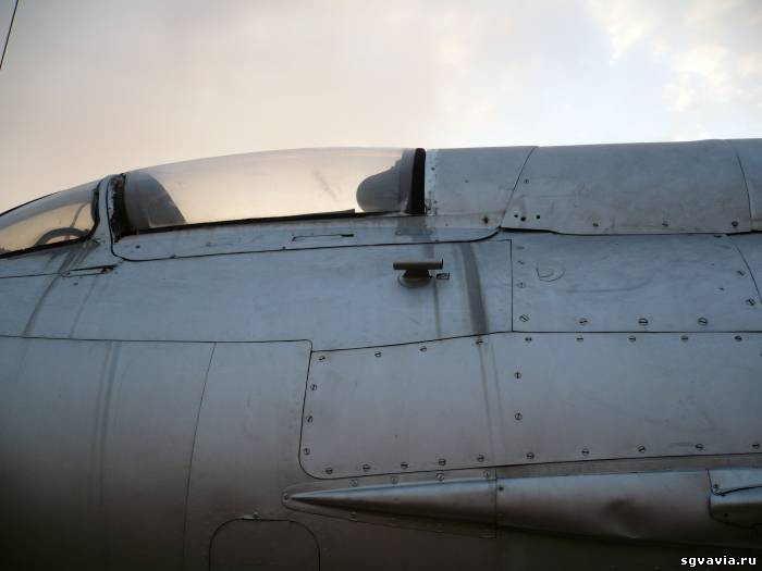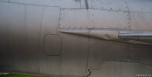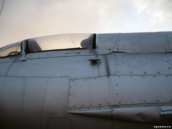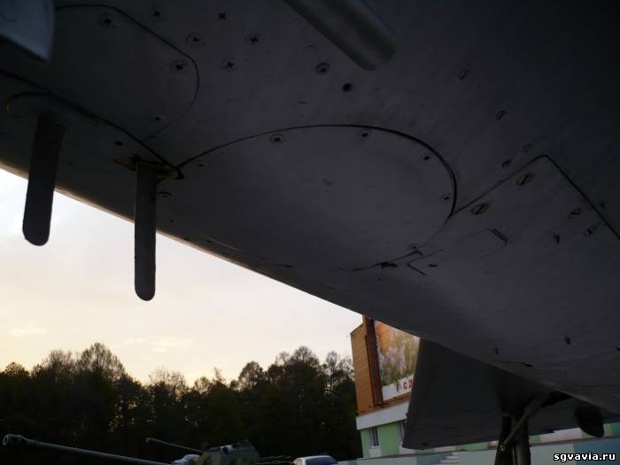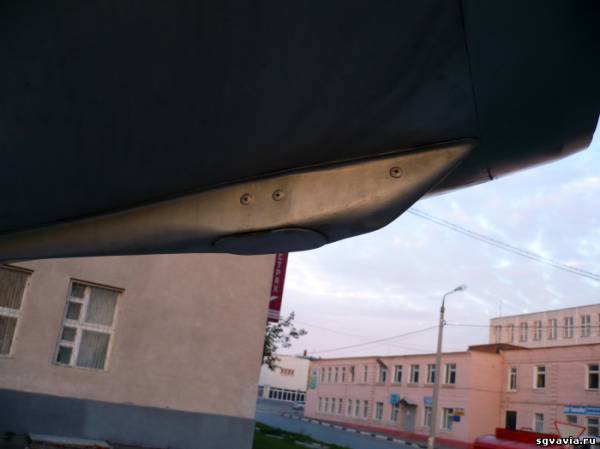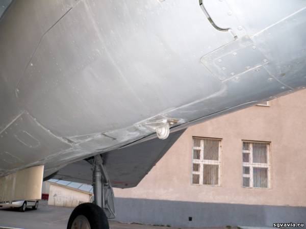 Ниже створки дополнительной подпитки воздухом отсутствуют «ласты» которые были на модификациях СМ и выше. В носовой части имеется нарост. Видимо из за него антенна СРО-2 перекочевала назад за створки носовой стойки шасси к антенне радиокомпаса АРК-10. Встроенная пушка на самолете отсутствует. Возможно, ее демонтировали, но мне кажется, что ее все же не было.