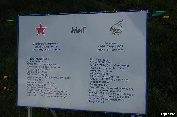 В экспозиции музея Жуляны имеется дистанционно – управляемый самолет мишень М-21 на базе переоборудованного МиГ-21ПФМ с.н. 940АЧ17. Но на табличке написан новый тип МиГ-21(МиГ-21Е тип-94М). Что это за фантазии музейных работников?