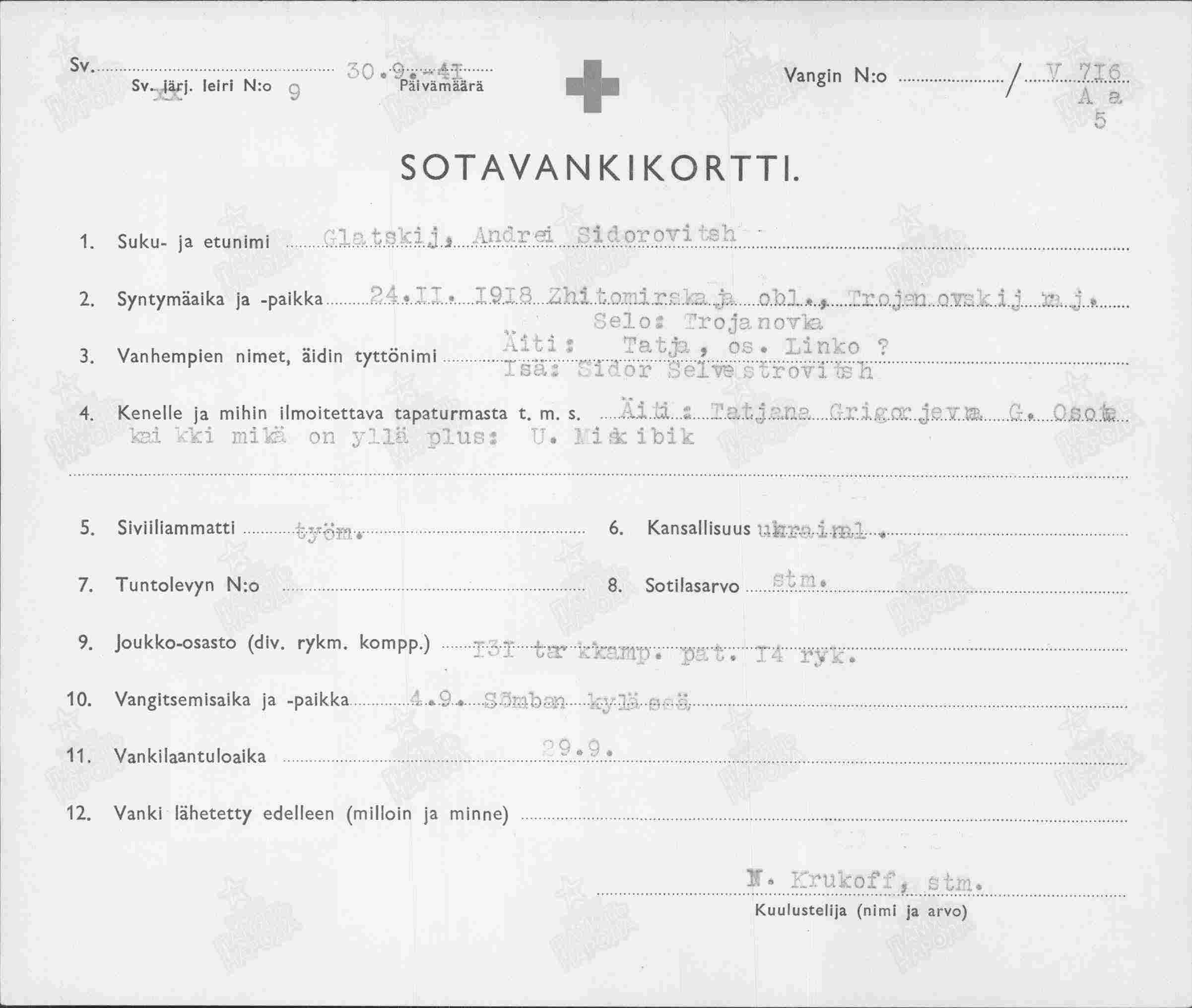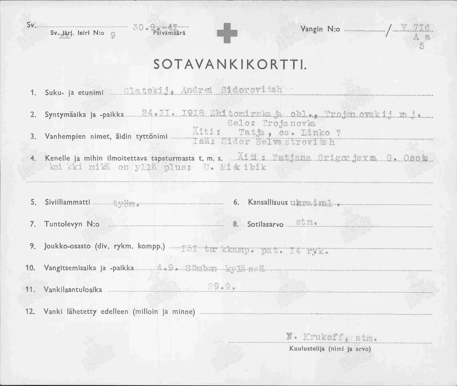 Для примера, можно сравнить рассказ освобождëнного из финского плена рядового Андрея Гладкого с записями в его карте пленного