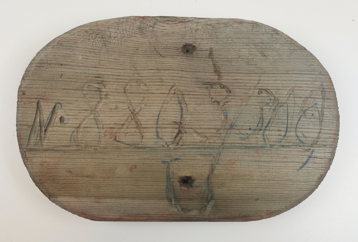 Деревянный надгробный камень из Оппдала; прямоугольный, с закруглёнными концами. На обратной стороне видны следы кола. В нескольких местах на надгробии сохранились остатки красной краски. Камень был установлен на могиле советского военнопленного № 8803 (Шталаг 309). На лицевой стороне высечен номер заключённого (надпись частично усилена карандашом).
