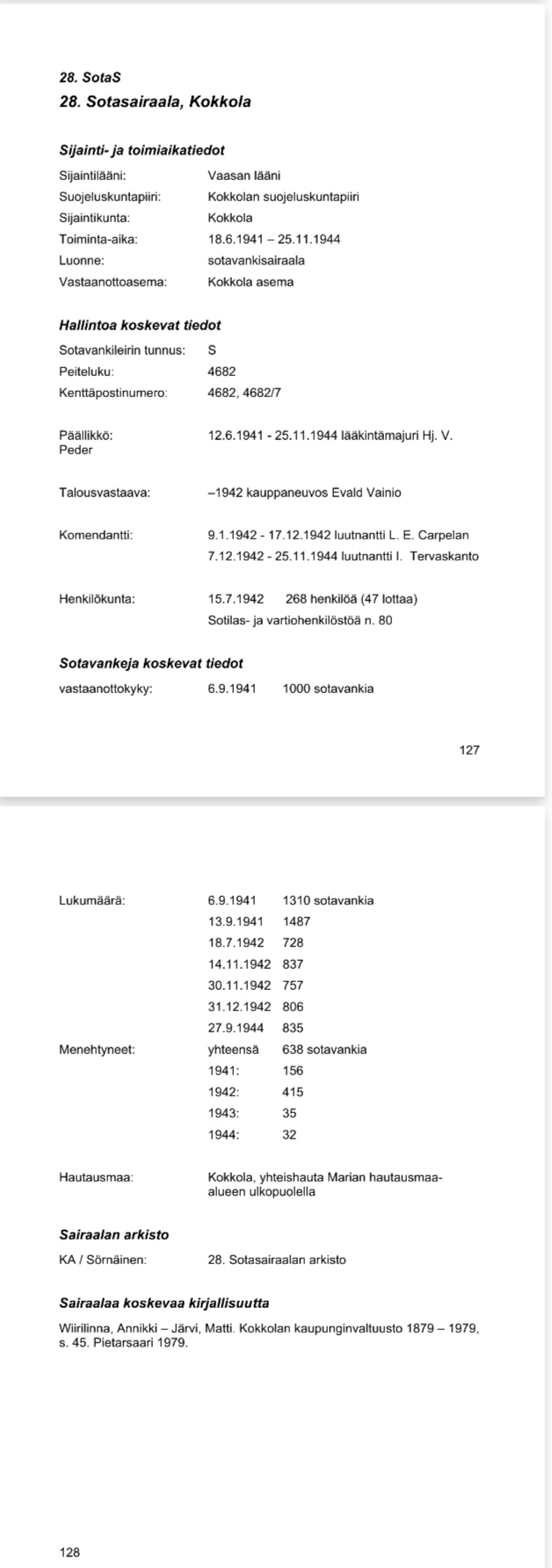 | Авиации СГВ форум ВОЕННОПЛЕННЫЕ - ШТАЛАГИ, ОФЛАГИ, КОНЦЛАГЕРЯ Лагеря в Норвегии и Финляндии Финский плен Военный госпиталь №28 Коккола (28. Sotasairaala, Kokkola) (Финляндия) |