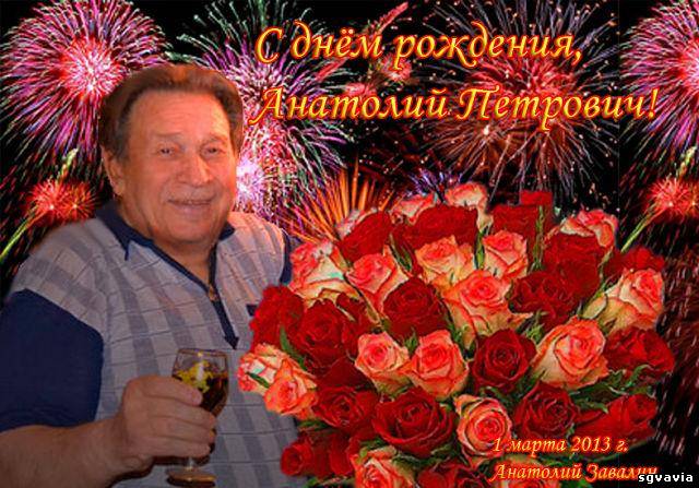 Уважаемый Анатолий Петрович! С днем рождения Вас! Здоровья наикрепчайшего, удачи, всех земных благ, внимания, любви и заботы родных и близких и ХОРОШЕГО окружения!!!!
