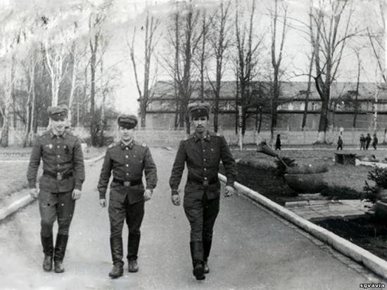 Слева направо : Беркаусов Виктрор (радист), Михачёв Сергей (оружейник) и я - Беликов Олег (картограф штаба) март 1974 г