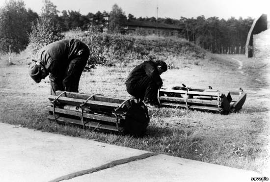 За работой оружейники 1 аэ. Аэродром Жагань, лето 1980 г.
