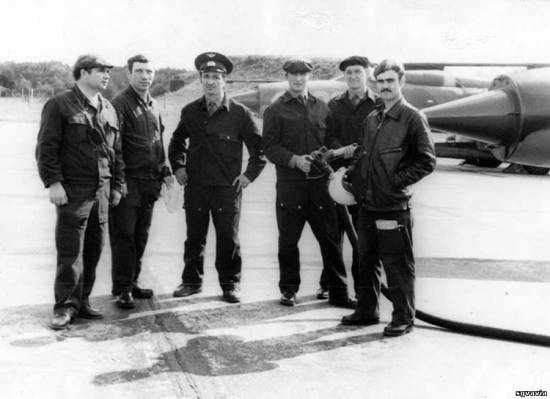 Слева с радиостанцией Зам по ИАС 2 аэ капитан Лукьянов Алексей Прокопьевич.Перед Алексеевым стоит НТЗ,а фамилию пока вспомнить не могу.